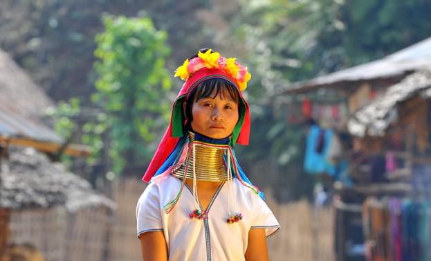 En la tribu Kayan, Tailandia, las mujeres se colocan aros en el cuello para alargarlo cada vez más. Este tipo de apariencia es considerada bella y elegante.