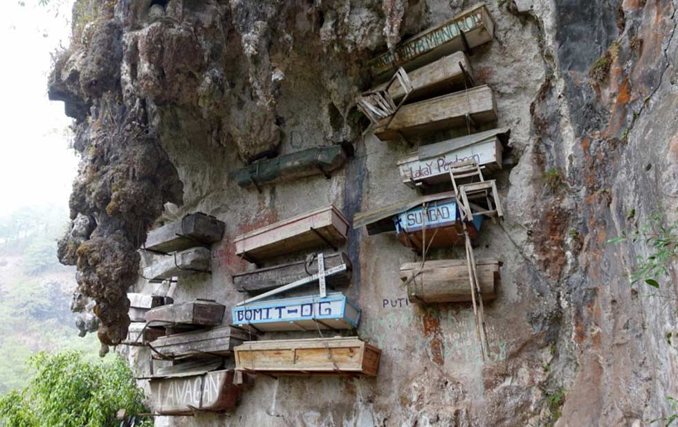 En algunas partes de China, Indonesia y Filipinas, los ataúdes suelen colgarse en cuevas, desde paredes muy altas. Se piensa que de esta manera las bestias no llegarán a los cadáveres, y es una manera de bendecir el alma de esa persona.