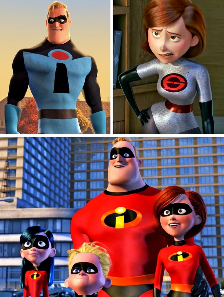 2 – “Levei anos para perceber que as roupas da família de Os Incríveis são uma combinação dos roupas do Sr. Incrível e da Mulher Elástico. O traje do Sr. Incrível tem um grande “I” e a Mulher elástico tem seu logotipo em um pequeno círculo; enquanto os trajes dos Incríveis têm um “I” em um pequeno círculo”.