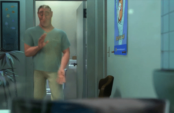 3 – “O dentista em Procurando Nemo (2003) sai do banheiro imediatamente após dar a descarga e vai cuidar da boca do paciente sem lavar as mãos”