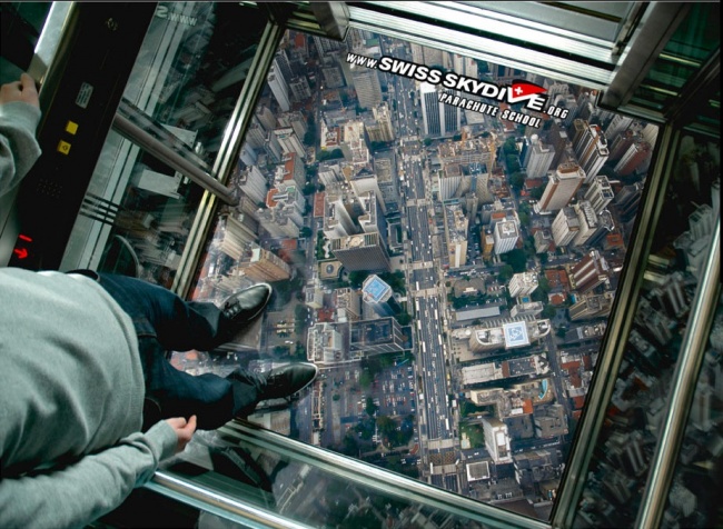 Vinilos que dan el efecto de una caída libre para llegar a la Escuela de paracaidismo “Swiss skydive” en Suiza.
