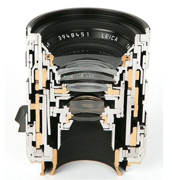 Lente de una cámara fotográfica que fue partida a la mitad.