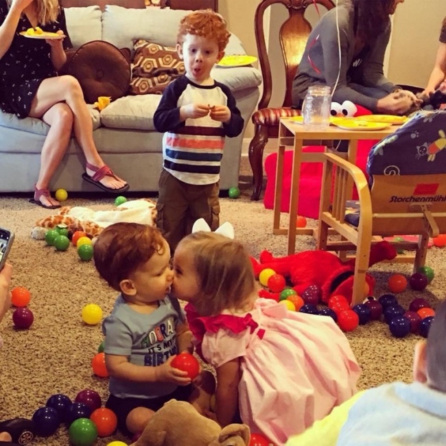 El hermanito atrás viendo como le dan su primer beso a su hermano menor.