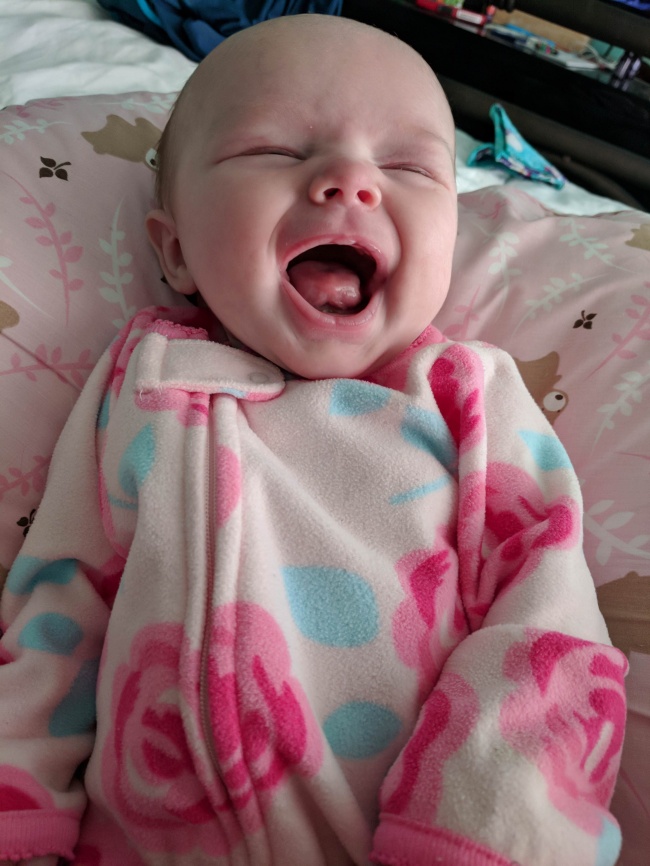 En esta foto mi hija de 2 meses acababa de despertar después de 8 horas de sueño. Su sonrisa retrata mi felicidad.