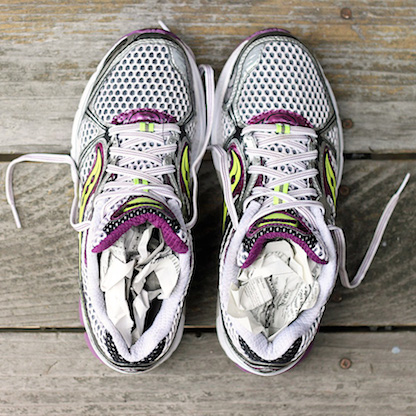 Si tus zapatos se mojaron por culpa de la lluvia, apenas llegues a casa, quítatelos y échales un poquito de bicarbonato de sodio. Luego, llena por dentro los zapatos con papel para que no se deformen. Cambia el relleno luego de unas horas.