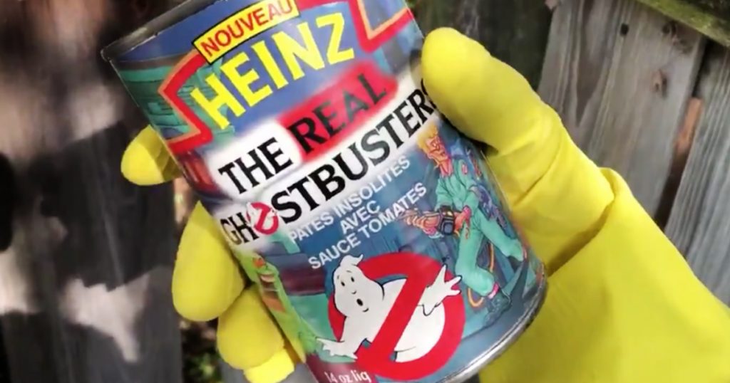 El producto temático de Heinz estaba adornado en el exterior con el logotipo clásico de los Cazafantasmas, pero el contenido de la lata había comenzado a manchar la etiqueta con “algo pegajoso”.