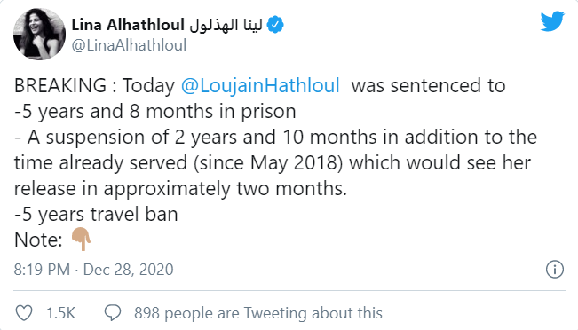 La hermana de Hathhoul también reveló que se le impuso una prohibición de viaje de cinco años y que Hathloul y el fiscal podían apelar el fallo del juez.
