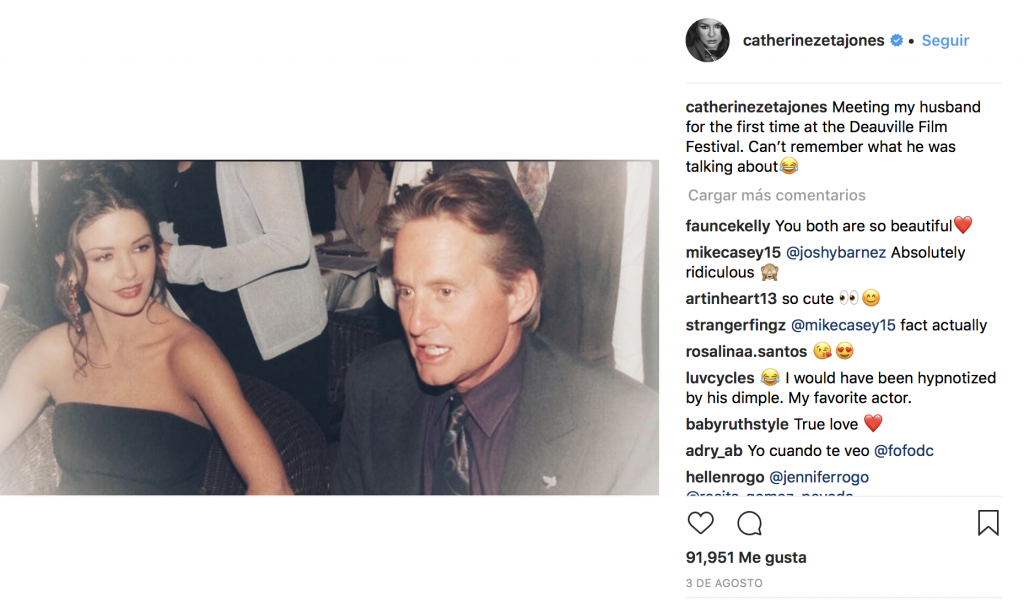 La mayoría conmocionan a sus fans y recuerdan con cariño los inicios de su artista. Esto sucedió a Catherine Zeta Jones, pues publicó una fotografía en la época cuando comenzaba su romance con Michael Douglas.