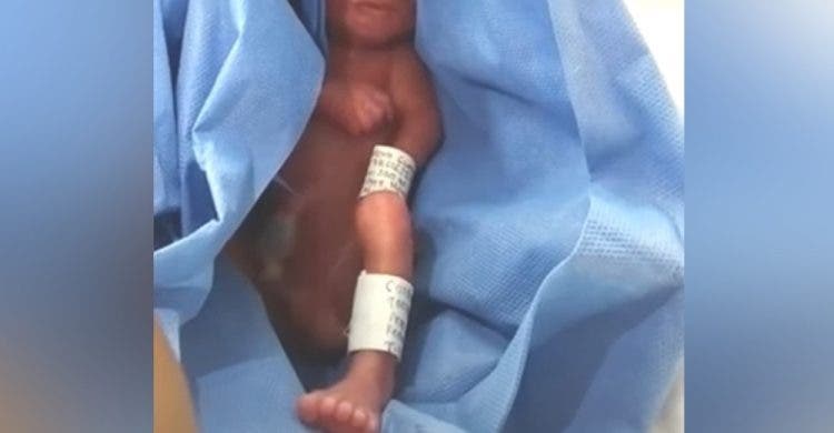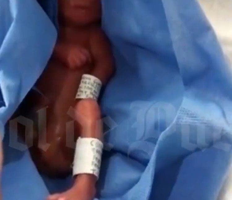 Con su teléfono grabó un vídeo del momento en el que se percató de que el recién nacido estaba llorando envuelto en una sábana de material quirúrgico de color azul con sus datos escritos en brazaletes colocados en su muñeca y su tobillo.