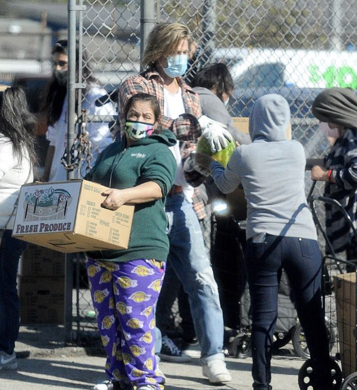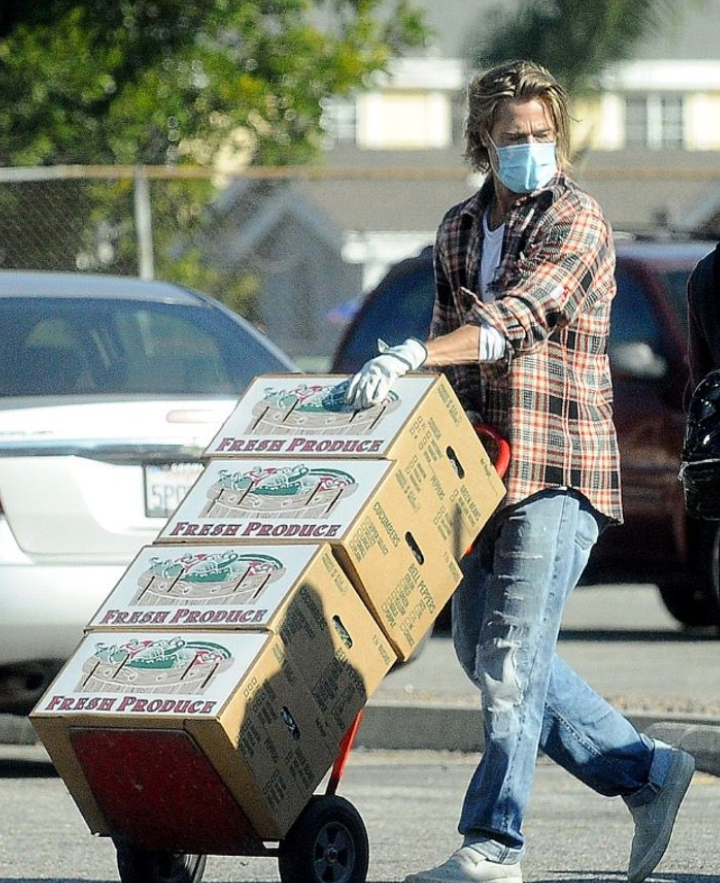 Pitt fue visto en South Centra Los Ángeles la semana pasada entregando cajas de comestibles a familias de bajos ingresos en el área. Con una mascarilla para protegerse a sí mismo y a los demás durante la pandemia de COVID-19, y un conjunto informal, la presencia de Pitt pasó desapercibida para el público en general.