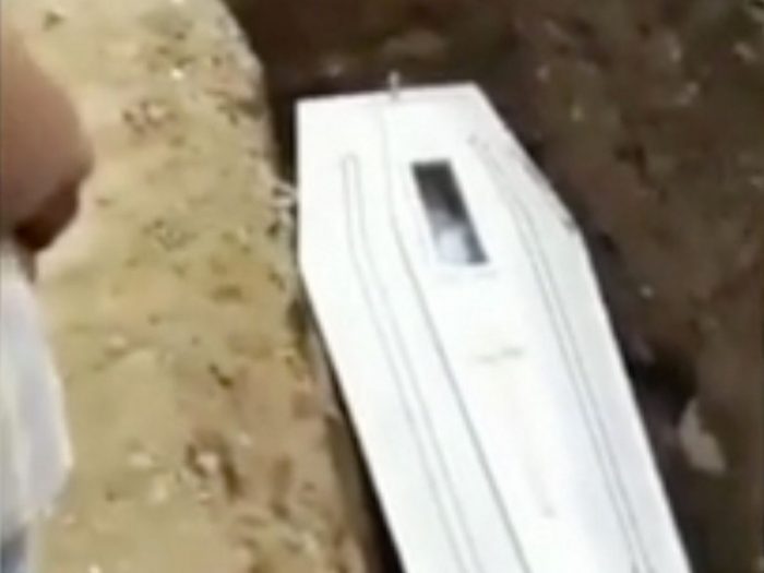 El video, que fue filmado el 5 de mayo, rápidamente se volvió viral y los locales sugirieron que el cuerpo estaba tratando de escapar del ataúd, pero no está claro si alguien revisó el cadáver para asegurarse que realmente no había signos vitales.