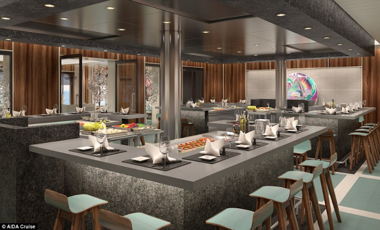 El concepto, aplicado a todos los barcos de AIDA, se basó en una idea del artista alemán, Feliks Büttner.
