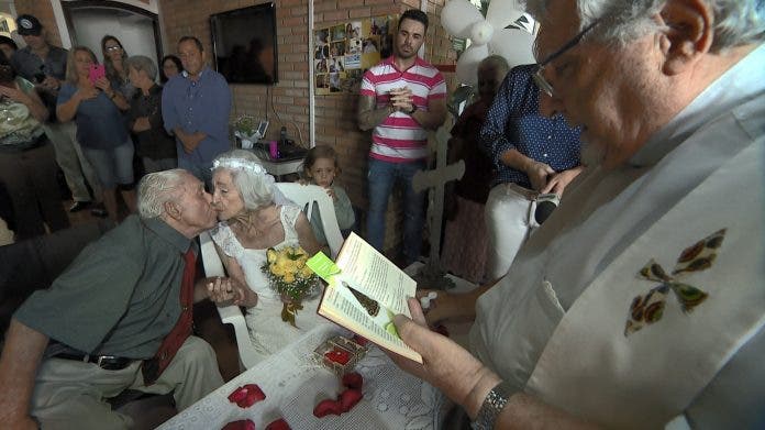Branca, de 95 años, y Marcelino, de 100 años, celebraron el pasado día 29 de la mejor forma: uniendo sus vidas en un matrimonio en el hogar para ancianos donde se conocieron.