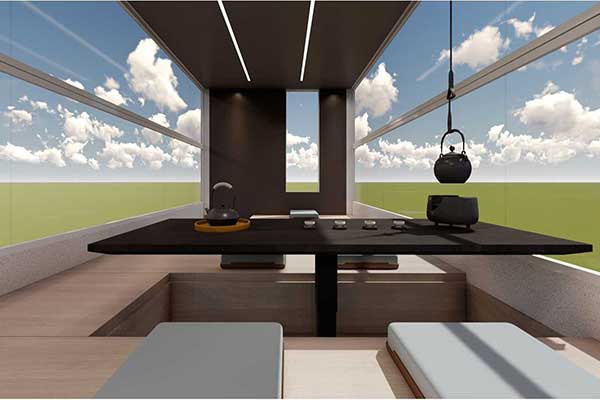 Pero sobre todo, lo que más ha llamado la atención es la terraza acristalada con grandes ventanas que brindan una vista panorámica y que se pueden polarizar de forma electrónica mediante tecnología LCD. Sin embargo, el segundo piso solo se puede utilizar cuando el vehículo no está en movimiento.