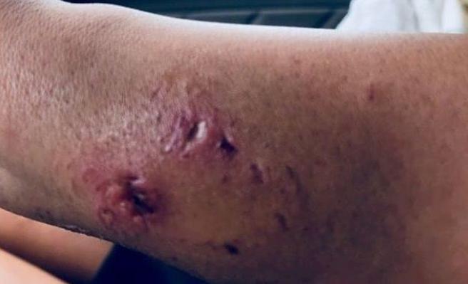 Katarina expresó que siempre mantuvo la calma e instintivamente cubrió su herida con la mano. De inmediato, se levantó y caminó hacia la orilla con su brazo extendido fuera del agua.