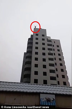 El horrible momento fue capturado en cámara y muestra a Bogdan Firsov, de 15 años, cayendo del piso 14, mientras su madre está animándolo a realizar el peligroso truco.