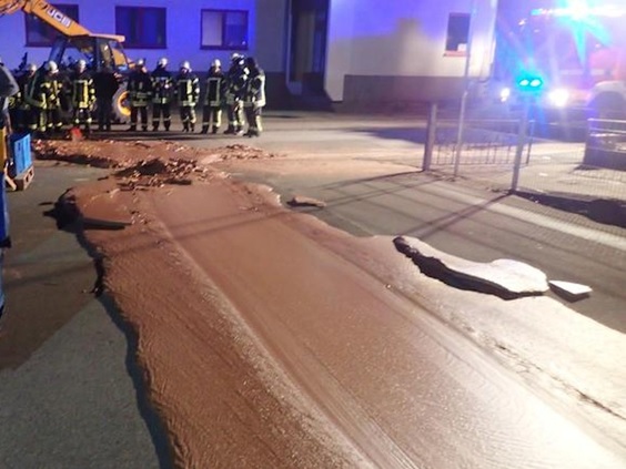 Tras el derrame de chocolate, un grupo de más de dos docenas de bomberos pasaron horas deshaciéndose del chocolate endurecido de la calle. Para eliminar la masa espesa, los bomberos recurrieron al uso de palas, antorchas y agua caliente.