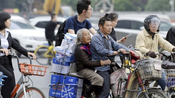Un mensajero de 52 años llamado Cai Yujun trabaja durante casi 14 horas todos los días haciendo diferentes tipos de entregas.