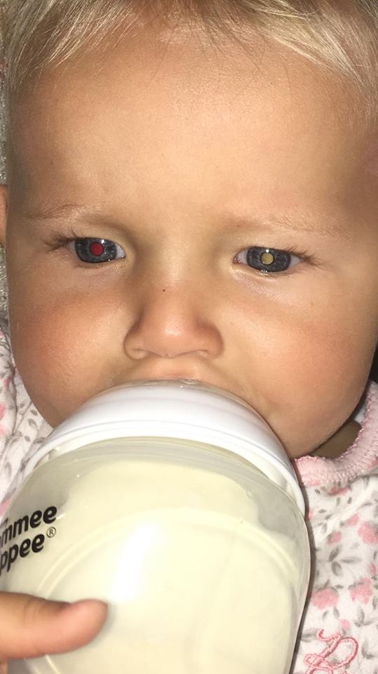 Esta característica solamente la pudo distinguir cuando utilizaba flash o cierto tipo de iluminación en la imagen. Fue después de publicar la foto, que uno de sus amigos le recomendó que consultara con un médico este signo. Lo terrible, fue que efectivamente había algo malo, pues su pequeña sufría retinoblastoma que se trata de un raro tipo de cáncer que afecta sobre todo a los más pequeños.
