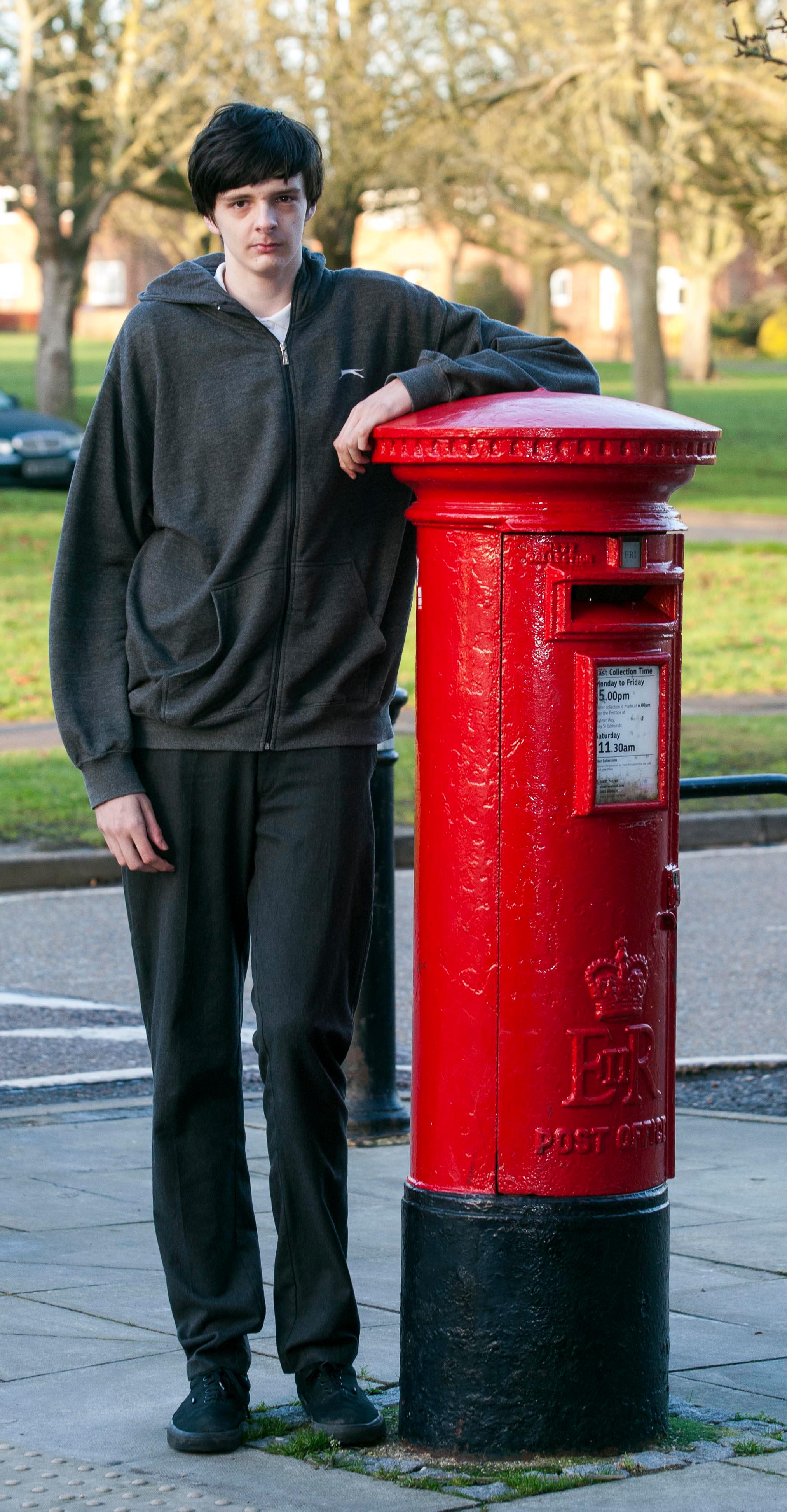 “La gente lo detiene en la calle y le pide fotos. Cuando las personas notan su altura, él dice ‘Oh, aquí vamos otra vez, sí, soy alto, sí, soy el adolescente más alto de Gran Bretaña.”
