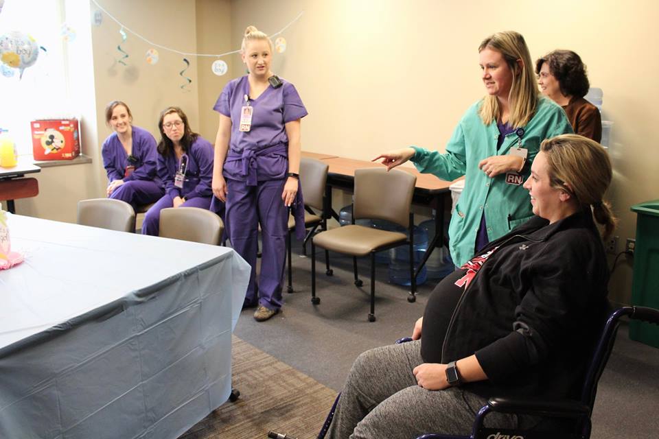 El personal de la Unidad de partos le hizo un baby shower a Shalee antes de dar a luz porque Nebraska Medicine no había visto esto en 10 años.