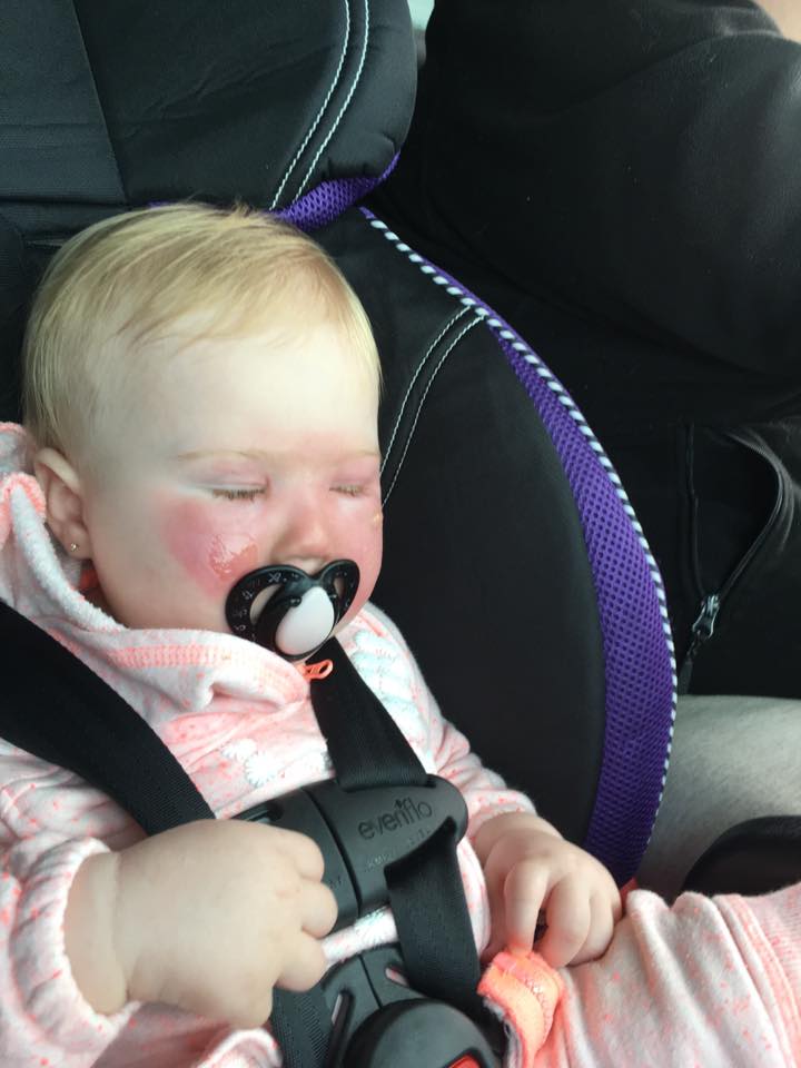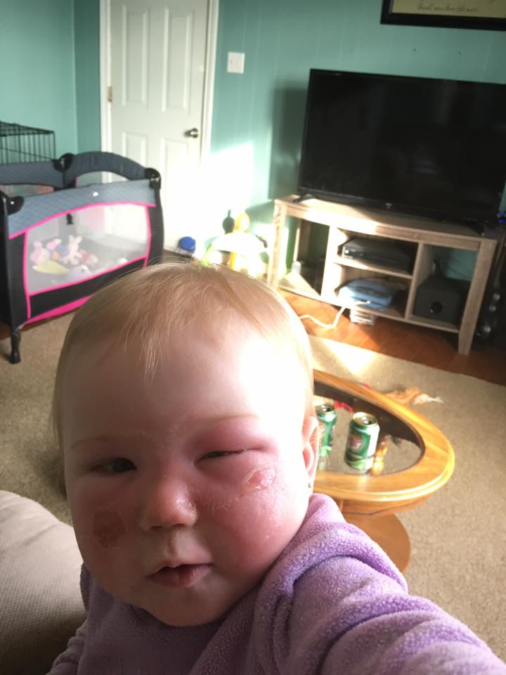 En el caso de Rebecca, su bebé sufrió un fuerte daño por confiar en un protector de la marca Banana Boat para niños en aerosol con un factor de protección 50. Recibió un tremendo susto al ver a su pequeña Kayla hinchada y en ese momento la llevó de inmediato al hospital.