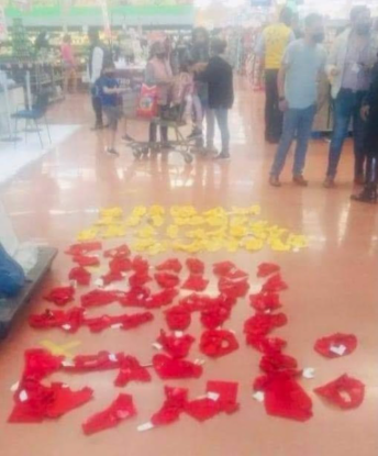 Además la ropa interior de color rojo y amarillo, tomaron otras prendas de una tienda Walmart.