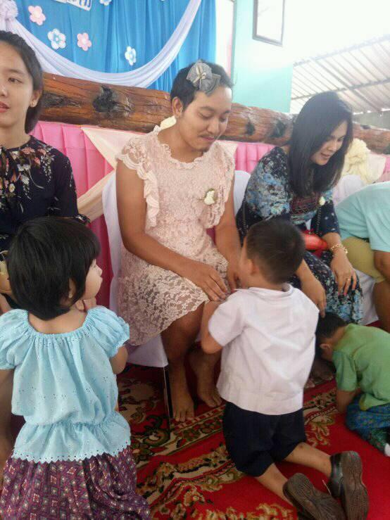 En el video que filmó aparecen Panuthai y Ozono en la tradicional ceremonia del día de las madres que se celebra en el colegio. Los niños tienen la costumbre de arrodillarse a los pies de sus mamás, lo hacen como símbolo de cariño y gratitud por todo el esfuerzo que hacen por ellos.