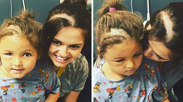 Tras la operación, a la niña le quedó una cicatriz en la cabeza que la puso muy triste. Pero las madres aman tanto a sus hijos que cuando los ven tristes o enfermos, hacen lo que sea para apoyarlos…