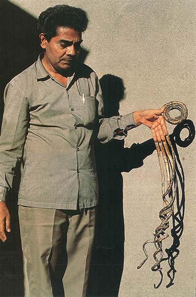 Luego de batir el récord, el indio decidió cortarse las uñas con un alicate grande, pero no pudo. Por lo tanto, un doctor debió utilizar una amoladora.