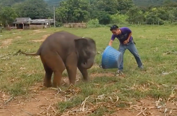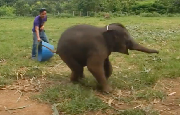 Este elefante bebé solo tiene seis meses de edad, e increíblemente se lo puede ver riendo mientras juega con su cuidador.