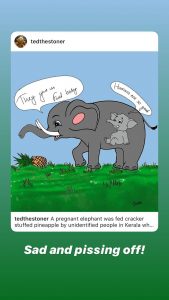 “En respuesta al acto atroz, el departamento forestal de Kerala reiteró la parte de la Constitución india que exige que los ciudadanos sean amables con los animales. “El artículo 51-A (g) de la Constitución de la India dice que será deber de todos los ciudadanos de la India tener compasión por las criaturas vivientes”, tuiteó el martes.