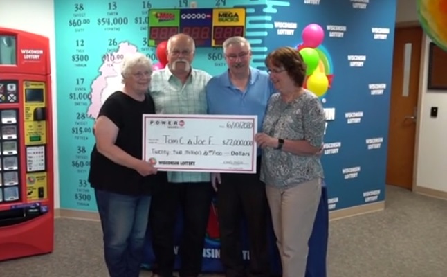 Después de informar a Feeney sobre sus ganancias, los amigos recogieron la recompensa en la Lotería de Wisconsin junto con sus esposas.