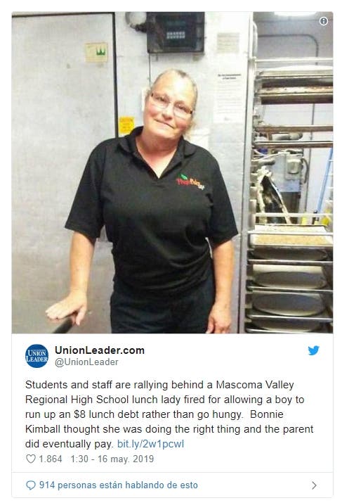 Por otro lado, el sindicato New Hampshire Union Leader se ha pronunciado por medio de un mensaje de apoyo en Twitter, diciendo que Bonnie sólo “permitió al chico comer antes que dejarlo con hambre. Pensó que hacía lo correcto y los padres pagaron luego”.