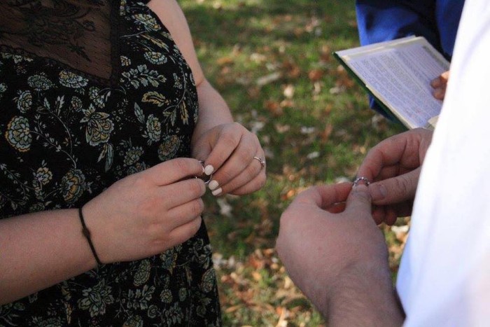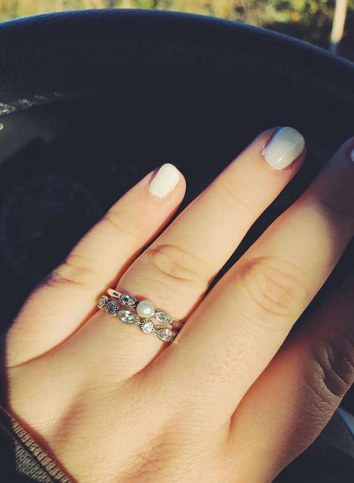 “Ni siquiera estaba pensando en los anillos, solo quería casarme con mi mejor amigo, pero él quería hacerlo especial. Ahorró el dinero suficiente para comprar dos anillos a juego de Pandora. Plata de ley y CZ para ser exactos”.