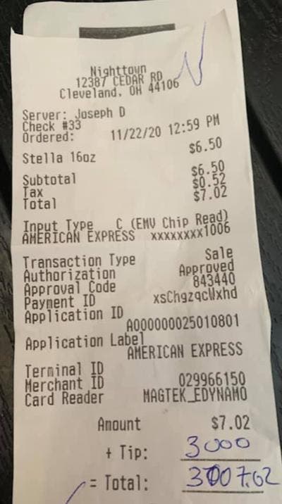 Pero al ponerse las gafas se fijó bien, se trataba nada menos que de 3.000 dólares. Era una propina de $3.000 en una cuenta de $7 Brendon estaba seguro que no era más que un gran error. Así que sin dudarlo, corrió hacia el cliente para hacerle ver que seguro se equivocó al escribir.