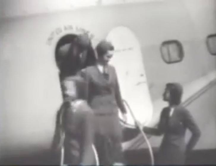 “No solo sirven comidas, estas chicas deben ser enfermeras registradas, menores de 24 años y deben cumplir exigentes requisitos físicos”, comentó el narrador de esta noticia. “Toma esta prueba giratoria. A partir de esto, los médicos de United Airline pueden saber qué condiciones pueden soportar las chicas en el aire”, se puede escuchar la voz en esta grabación donde narra lo que ocurre mientras una joven es puesta a dar vueltas sobre un punto para hacerla marear.