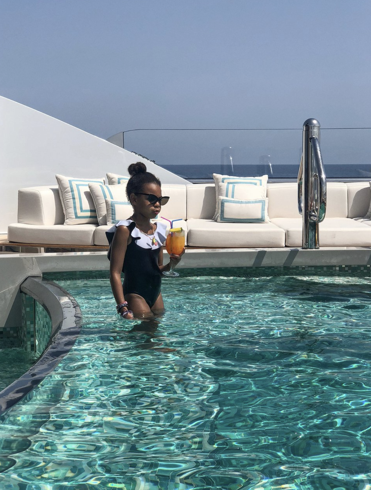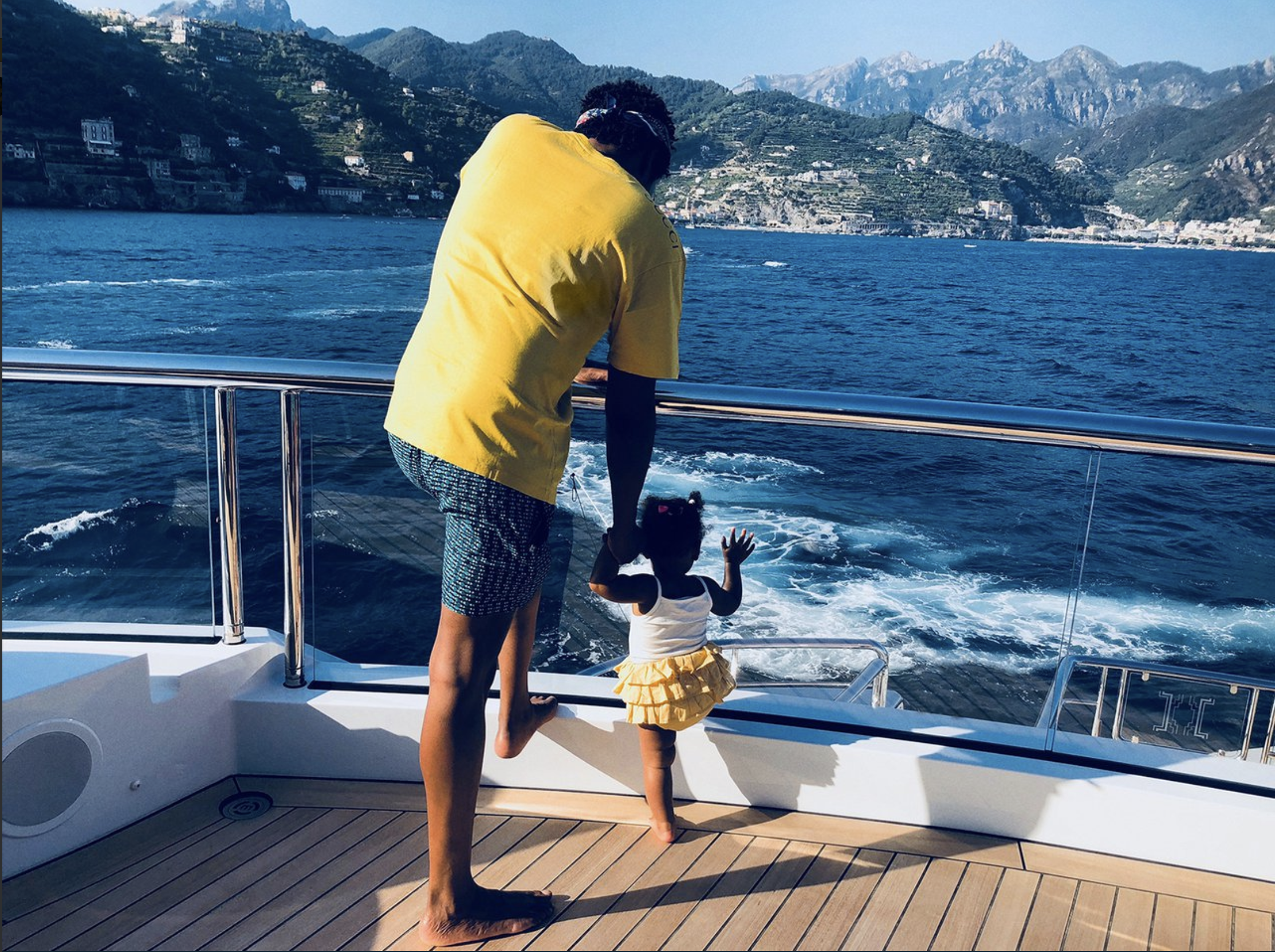 Rumi, aparece en otra fotografía, se encuentra al lado de su padre, mientras disfrutan de una maravillosa vista desde el yate que adquirió la familia para vacacionar.