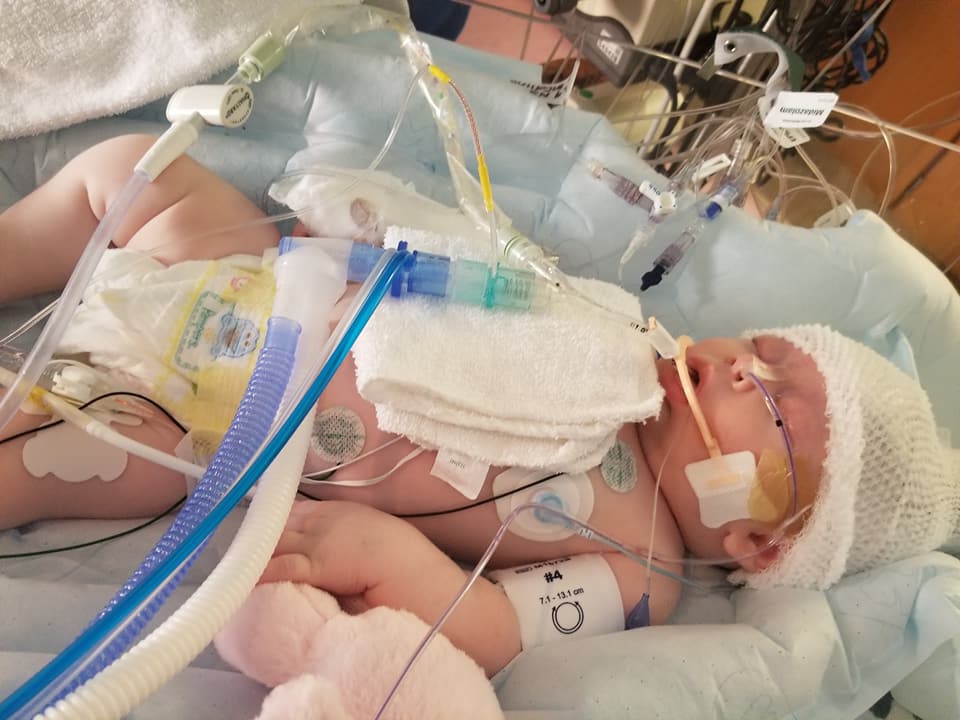 Aunque ahora está estable con la atención médica y un respirador artificial, es muy probable que sea trasladada a cuidados intensivos pediátricos. Además de hacer un seguimiento constante de la presión arterial baja que representa, es alimentada por medio de una sonda.