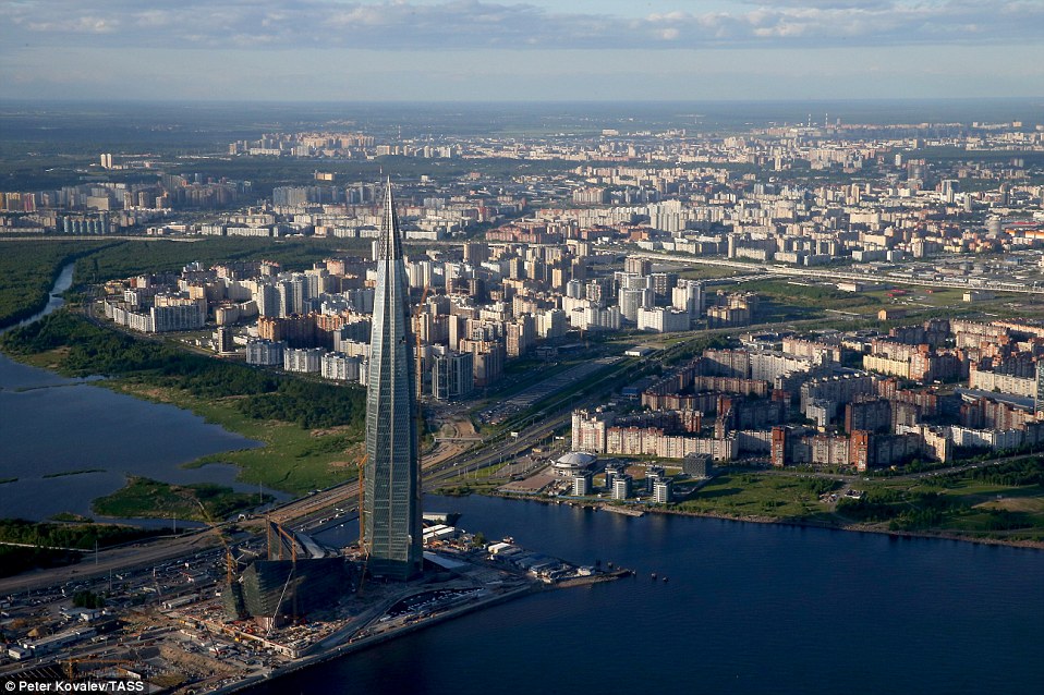 La silueta del Centro Lakhta fue diseñada para indicar una llama, una característica del logotipo de la compañía rusa.