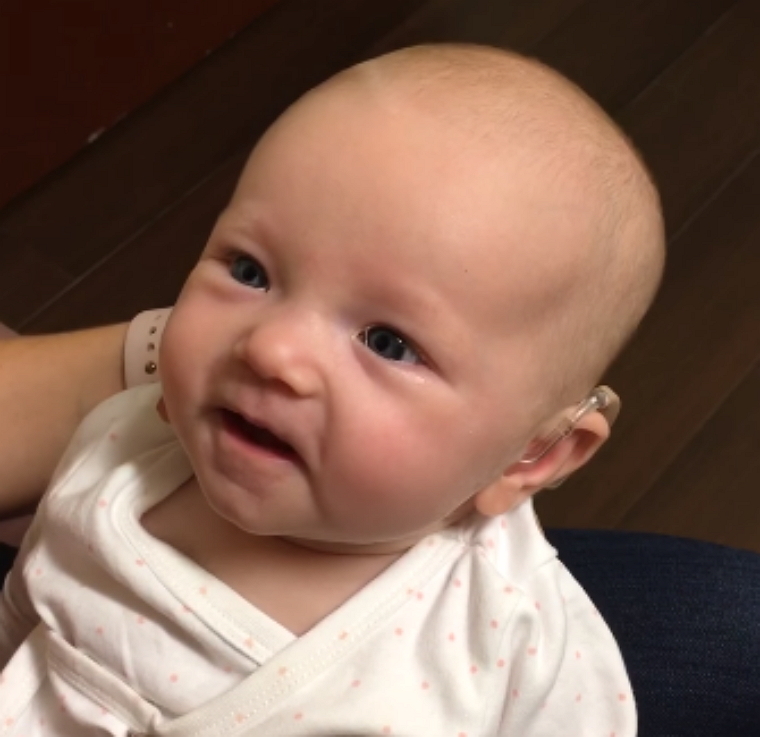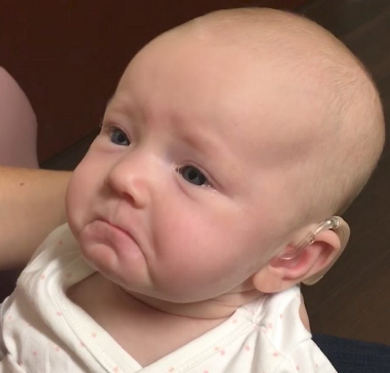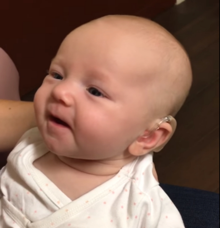 Con lágrimas en los ojos, esta dulce bebé finalmente podrá escuchar absolutamente todo a su al rededor, y lo más importante de todo, la voz de su querida mamá.