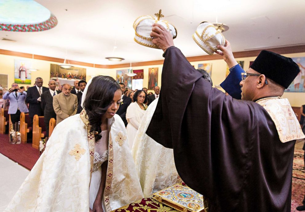 La boda se llevó a cabo en Temple Hills, Maryland y asistieron 300 invitados y 13 sacerdotes. La ceremonia se mantuvo arraigada a la tradición cristiana ortodoxa de Etiopía y se rompió el protocolo pues Arianna decidió que su padre la llevara de su brazo hacia el altar.
