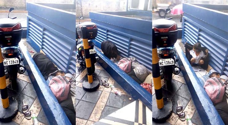 La niña fue grabada por un hombre que la vio en una situación bastante particular. Ella estaba cubierta con una manta bajo la lluvia, sosteniendo un lápiz en la mano haciendo su tarea de la escuela. A su lado, dormían sus padres y sus dos hijas.