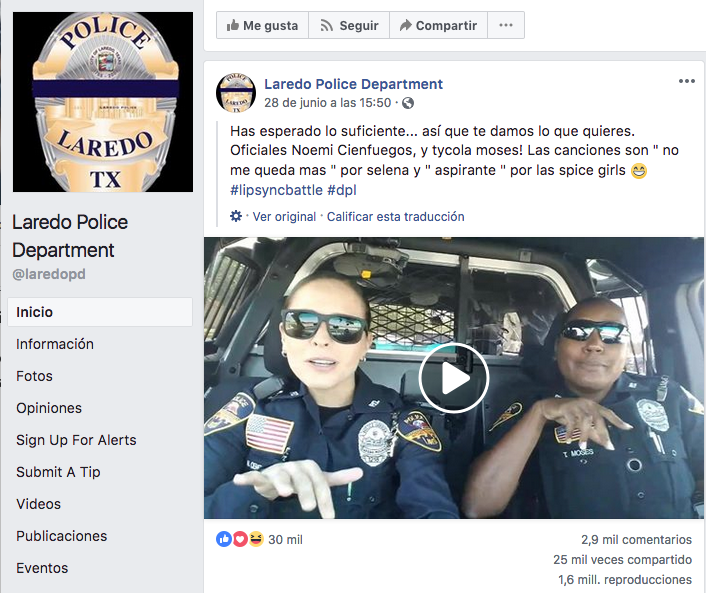 Este vídeo fue publicado en la página de Facebook del departamento de policías, actualmente cuenta con más de 29 000 comentarios y más de un millón de visitas.