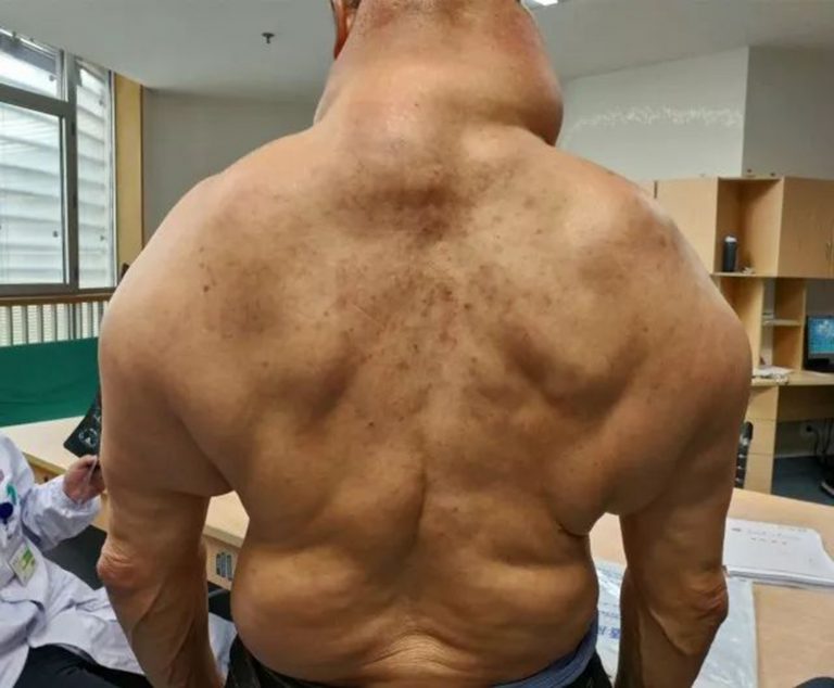 Tan desarrollo por este motivo un cuello muy grueso sobrepasando el diámetro de una cintura de hombre. Tan comenzó a notar el cambio de su estructura corporal en 1997. Ya para el año 2011 casi alcanzaban el tamaño que ahora tiene y no disminuía por nada.