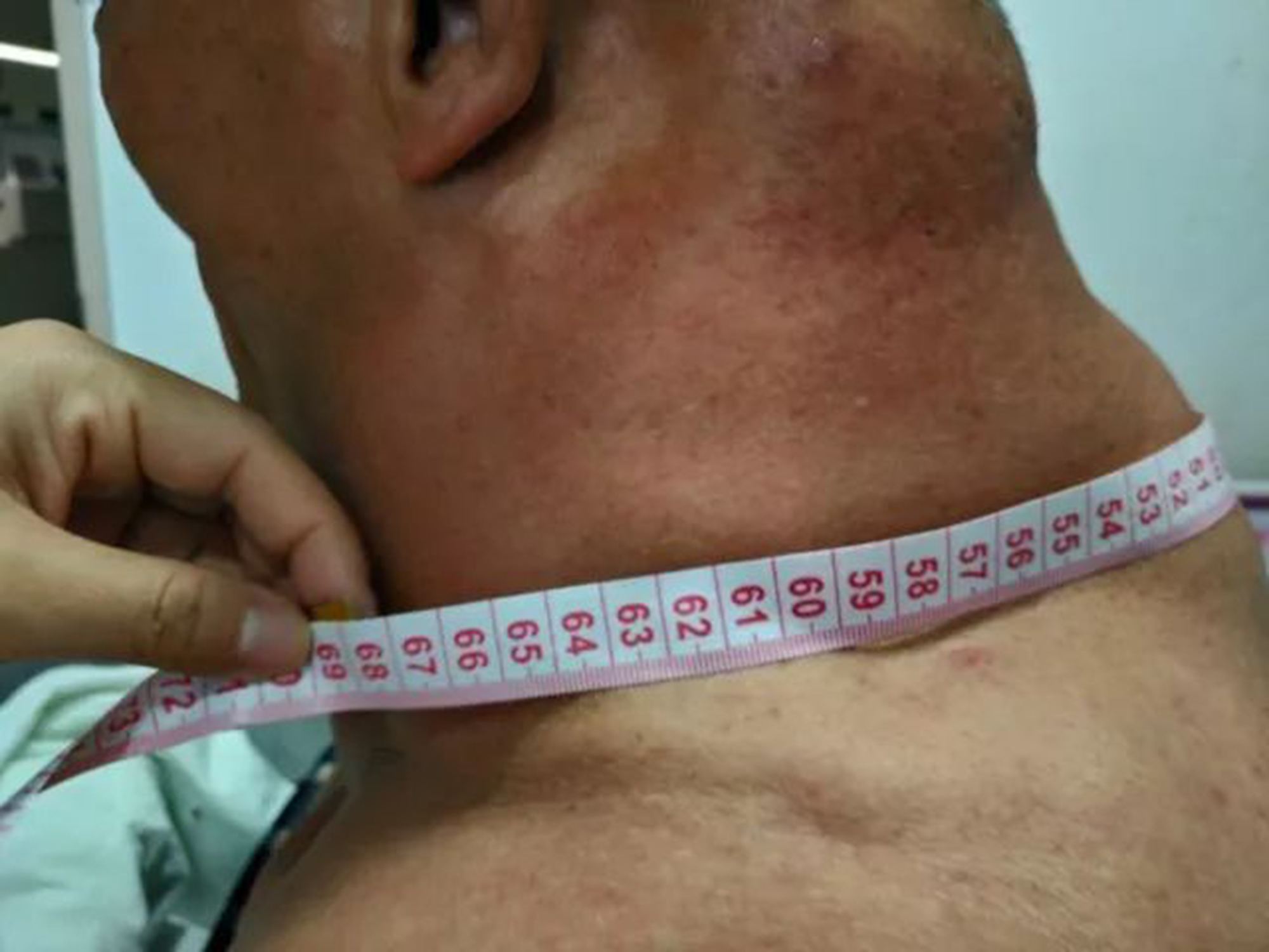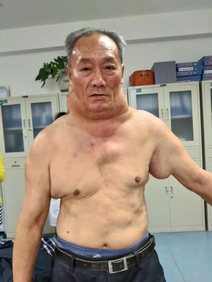 Contrajo una rara condición a consecuencia del exceso prolongado de consumo de vino, lo que le hizo que su cuello se haya hinchado exageradamente, este es su aspecto: