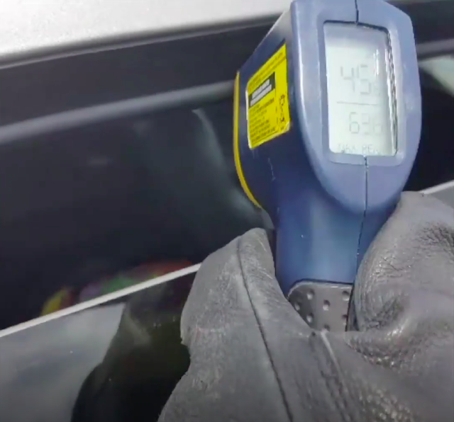 Rápidamente lleva un oficial a la unidad y verificó que la temperatura del automóvil era de 45 grados Celsius.