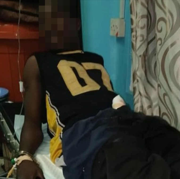 Las imágenes muestran al sospechoso acostado en una cama de hospital con el pene envuelto en una venda.
