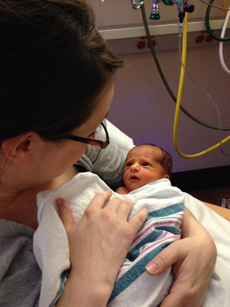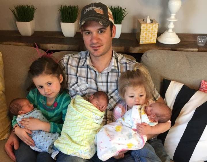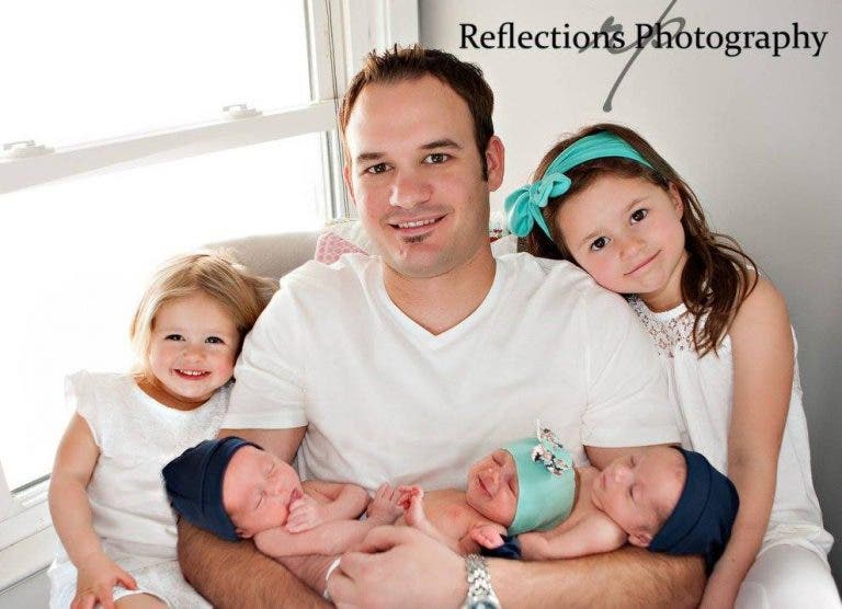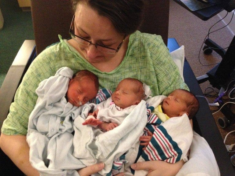 Todo lo que hacía la madre era sonreír porque los días previos al parto al fin se terminaron y ahora tenía entre sus brazos a tres hermosos bebés. Su marido Joey y sus dos hijas Tenley y Chloe estaban tan emocionados como ella con los nuevos miembros de la familia.