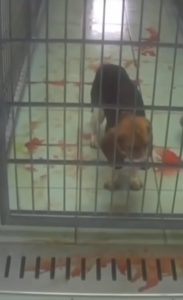 “El peor trato se mantuvo para los monos. La raza de monos macacos son pequeños primates relativamente ligeros, que a menudo se utilizan para experimentos con animales en LPT. Se mantienen en condiciones de hacinamiento en pequeñas jaulas. Muchos de los animales han desarrollado tendencias compulsivas y se los ve dando vueltas en círculos ”, agregó.